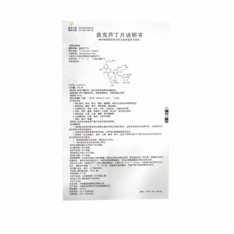 CSPC/石药集团 Быстрый рутин таблетка 60 мг*100 таблеток/синдром окклюзии бутылки