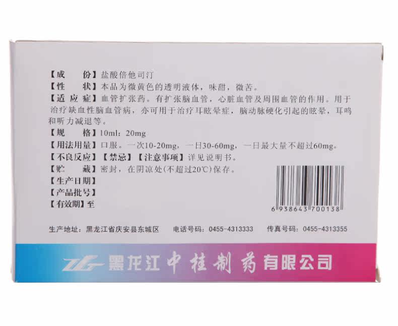 中桂 Сикибининовая гидрохлорид гидрохлорная пероральная жидкость 10 мл*9 ветвей/коробки сосудистых дилатационных препаратов ишемическая мозговая сосудистая заболевания, головокружение, ушах, шума в ушах в ушах в ушах в ушах