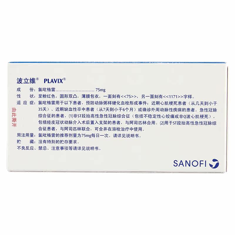 波立维 Polivo -Sulfate Hydrodepodebodeoglytic Tabletic 75 мг*7 таблетки/ящик атеросклероз