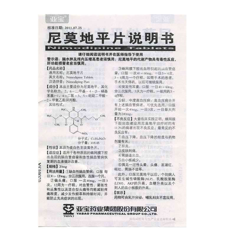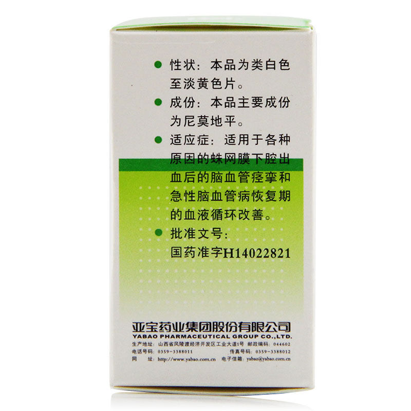 亚宝 Немо пинг таблетки 20 мг*50 таблеток*1 Улучшение бутылки/коробки субтинальной гиперемии после цереброваскулярного спазма улучшает острый период восстановления мозгового сосудистого заболевания кровообращения