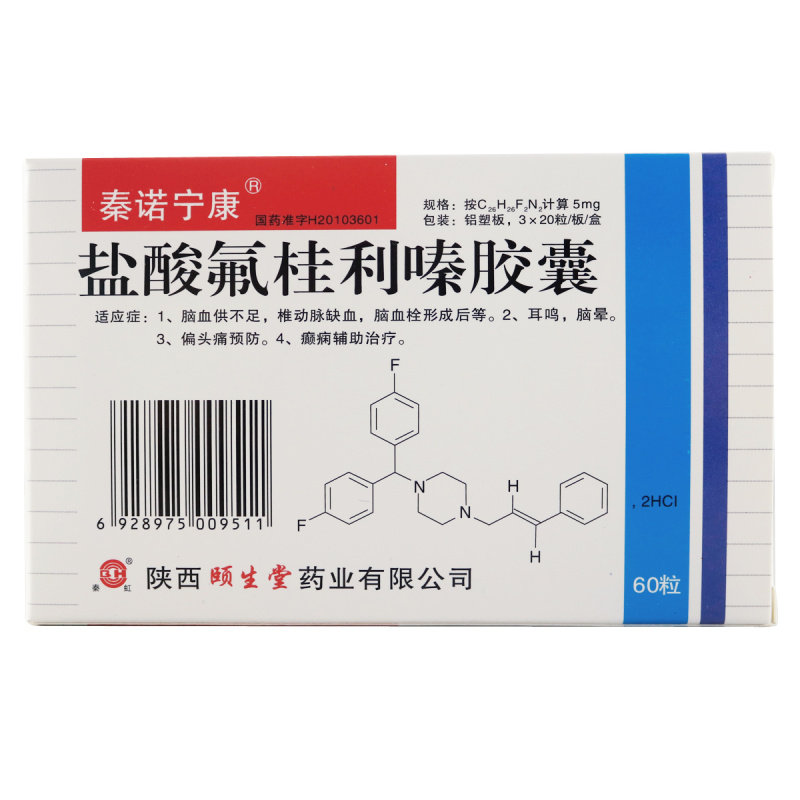 1 коробка бесплатной доставки/скидки с несколькими ящиками] Qin nonononkangkine гидрохлорид гидрохлорида капсулы 5 мг*60 зернового кровоснабжения церебрального кровоснабжения до недостаточного ишемии позвоночного и церебрального тромбоза