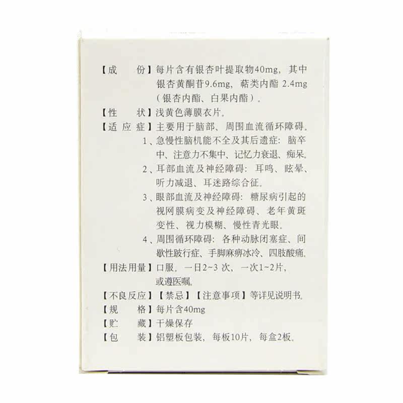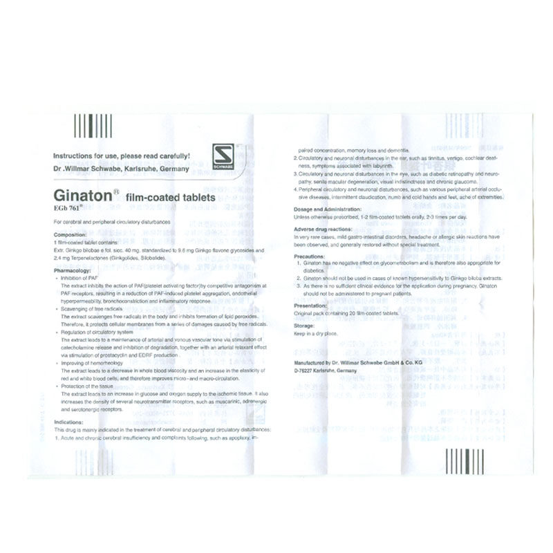 金纳多 Ginkgo Biloba Extract 40 мг*20 таблеток/коробка