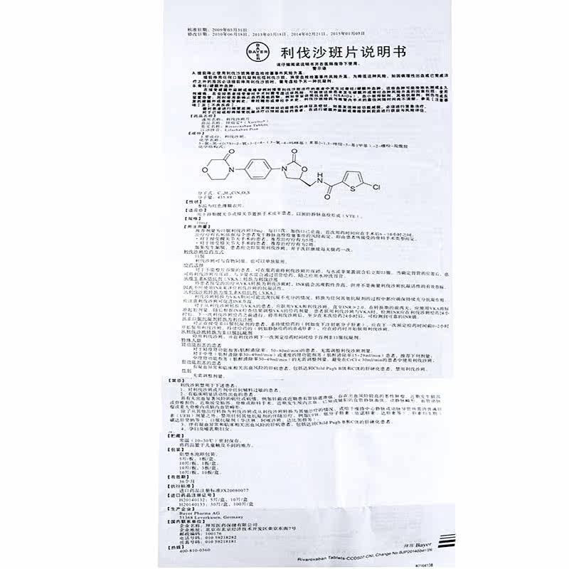 拜瑞妥 Таблетка Livarhabane 10 мг*5 таблетки/коробка взрослый тромб тромб.