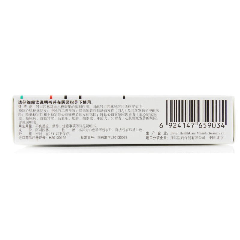 拜阿司匹灵 Аспириновая кишечная таблетка 100 мг*30 Таблетки/коробка Острый инфаркт миокарда Антицил антицилитовый ход Вторичное профилактика ишемии головного мозга