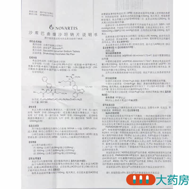 [SF Бесплатная доставка+до 168 юаней/коробки] Nuo Xinbu Satana Salin Tablet 50 мг*28 таблетки/коробка Хроническая сердечная недостаточность снижает сердечно -сосудистую смерть, таблетка Sanderbatta