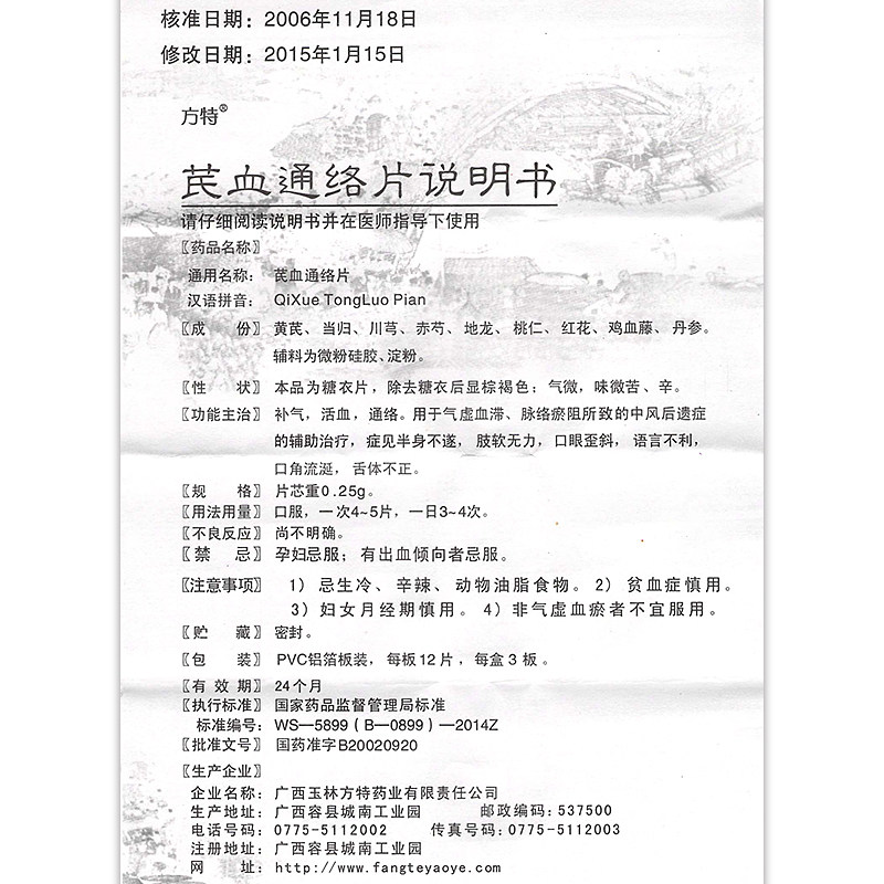 方特(医药) Qi Blood Pass Talkes 0,25 г*36 штук/коробка