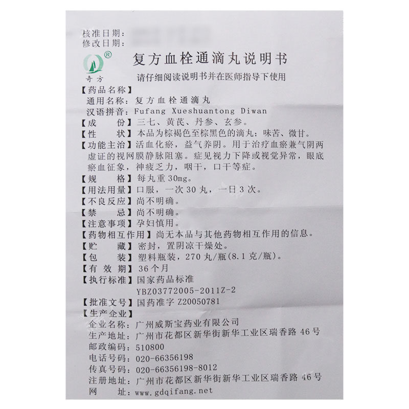 奇方 Составной тромбоз Tongdi таблетки 30 мг*270 таблетки*1 бутылка/коробка для лечения венозного обструкции снижение зрения, аномальная усталость, усталость, сухость во рту во рту