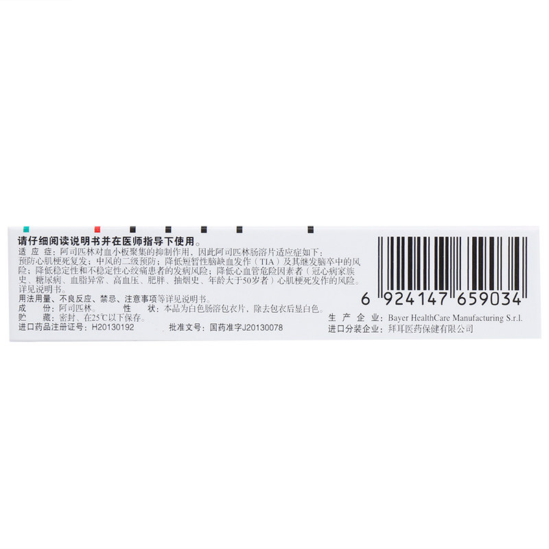 拜阿司匹灵 Аспирин энтерикохолические таблетки 100 мг*30 таблетки/инфаркт миокарда штриха коробки