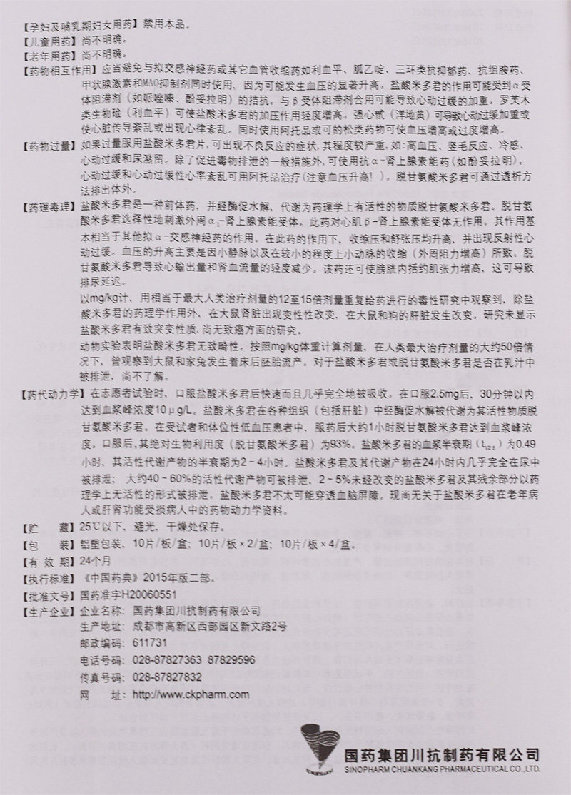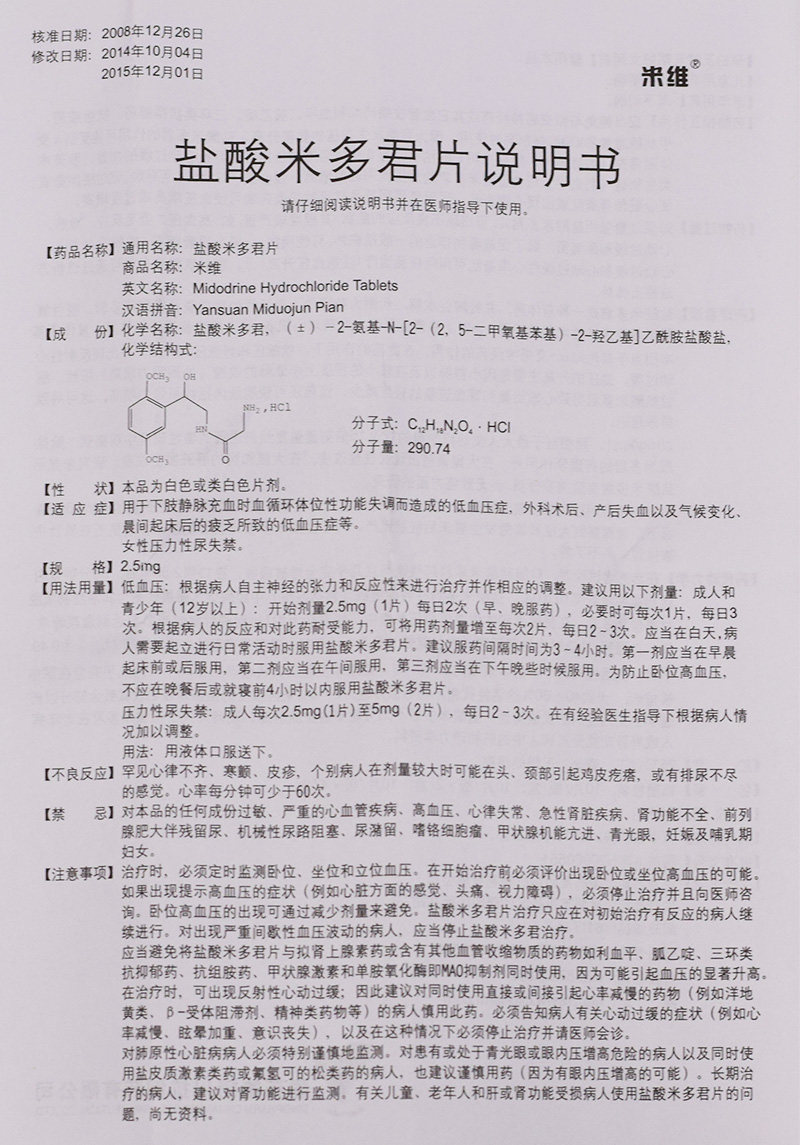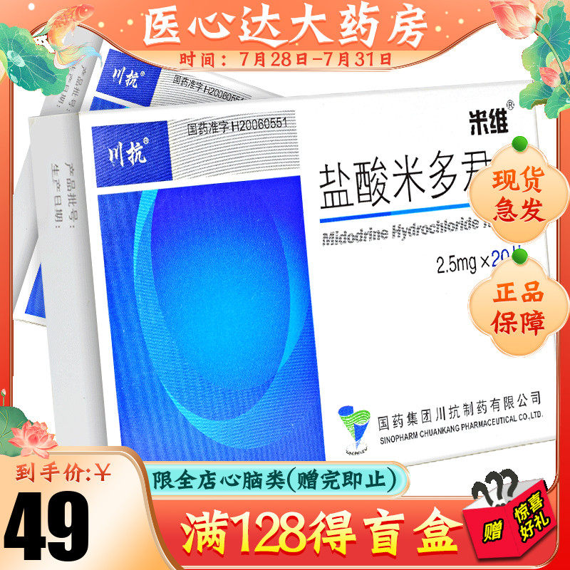 米维 Мидрохлорид таблетки Miwei гидрохлорид 2,5 мг*20 таблетки/коробка низкое кровяное давление.