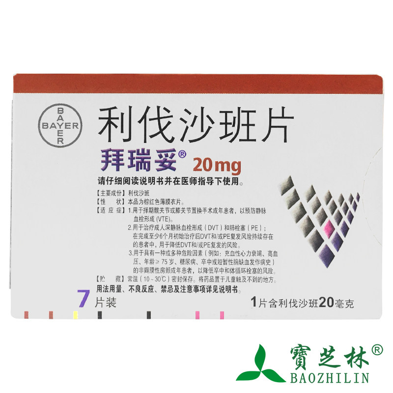 拜瑞妥 Таблетка Bayerchelvaria 20 мг*7 таблетки/коробка с фибрилляцией комнаты венозной эмболии сердечной недостаточности, чтобы предотвратить формирование венозного тромба