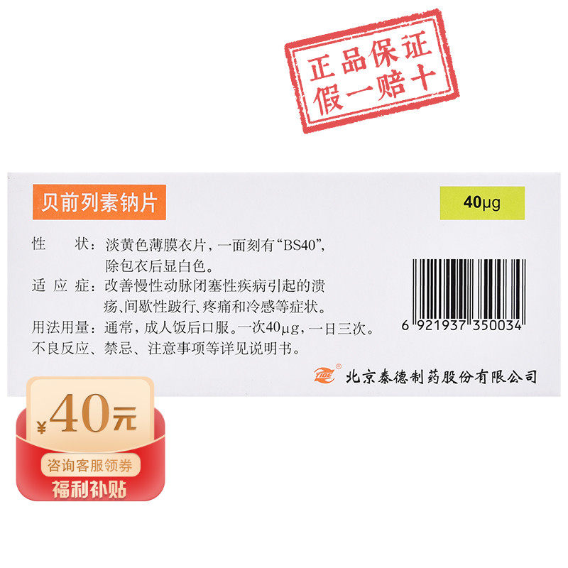 Всего 52 юань/коробку] передние таблетки каянабе натрия 40 & mu; g*10 таблетки/ящик артериальная окклюзия 20 & mu; g Хроническая окклюзионная заболевание натрия натрия натрия