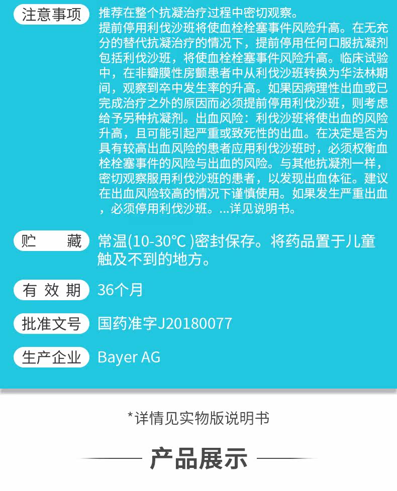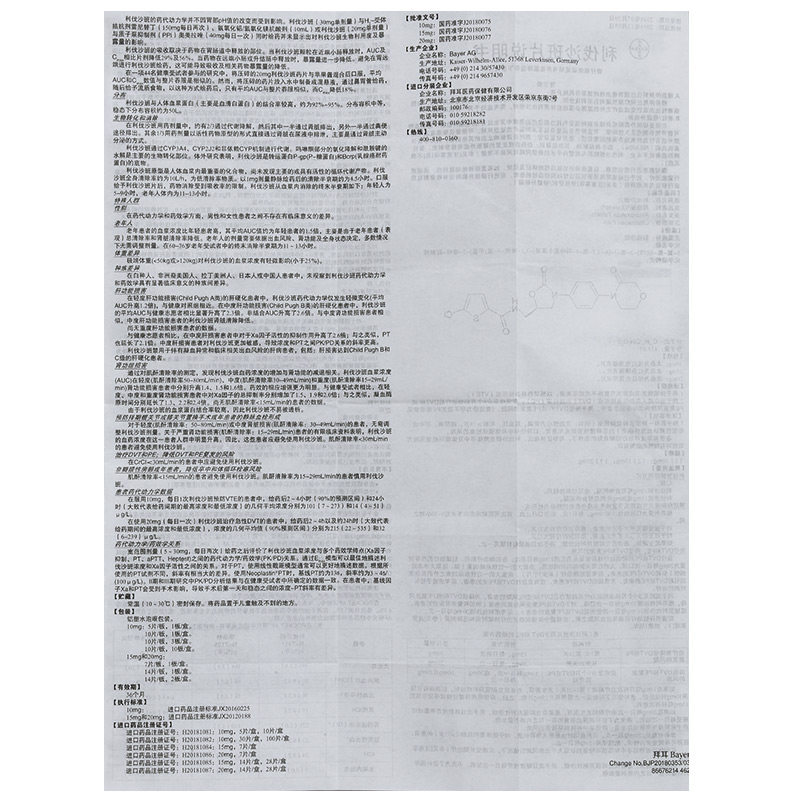 拜瑞妥 Таблетки Bayerchelvar Sausan 20 мг*7 таблетки/ящик легочная эмболия для уменьшения инсульта и системной эмболии
