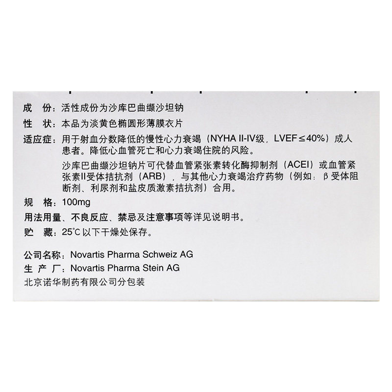 Novin nuo xinfu/enteresto shakakusa salin salin таблетки натрия 100 мг*14 таблетки/коробка для лечения хронической медицины сердечной недостаточности