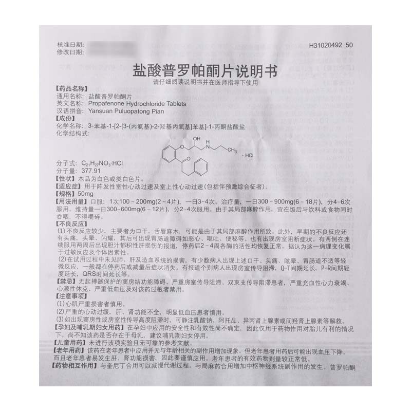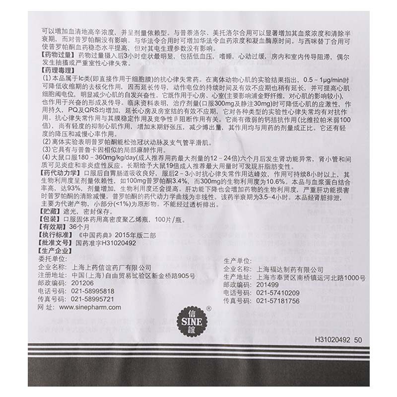 SINE/信谊 Таблетки пропафенона гидрохлорида 50 мг * 100 таблеток * 1 флакон/коробка, наджелудочковая тахикардия, подлинная гарантия
