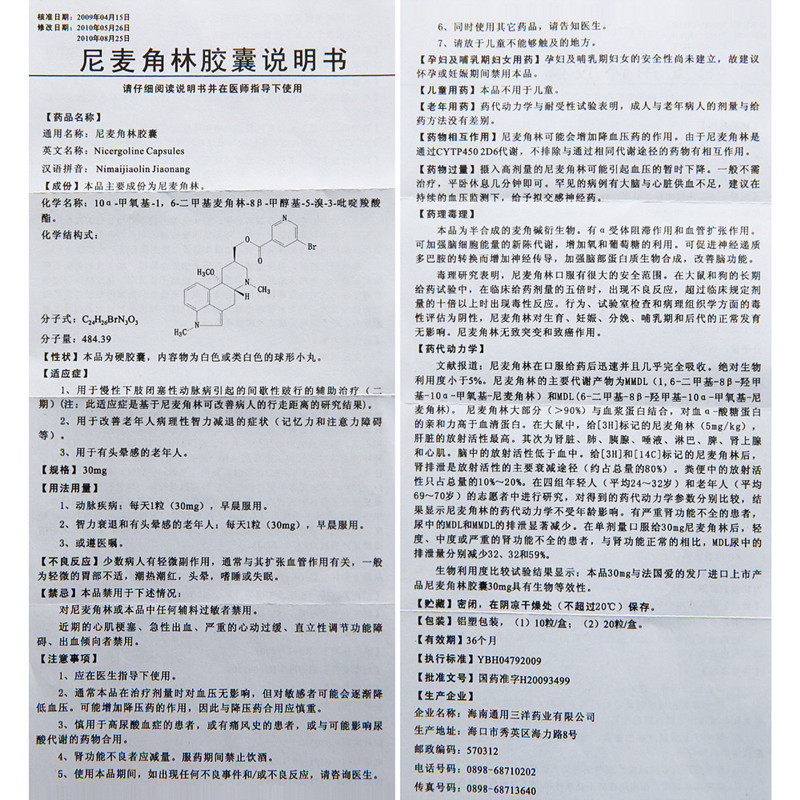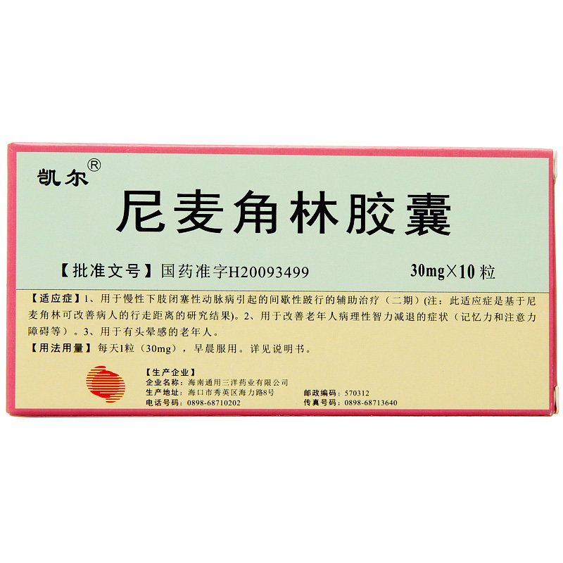 凯尔 Лесная капсула Нимаи Кок 30 мг*10 капсул/коробку прерывистого шума пожилых людей, расстройство внимания памяти, патогенный интеллект и интеллект, головокружение