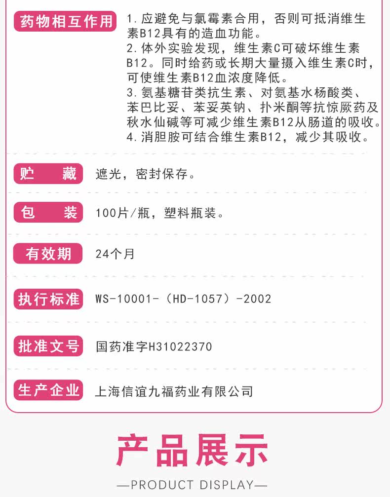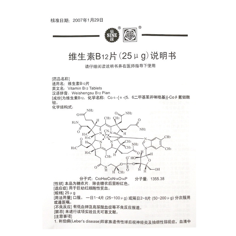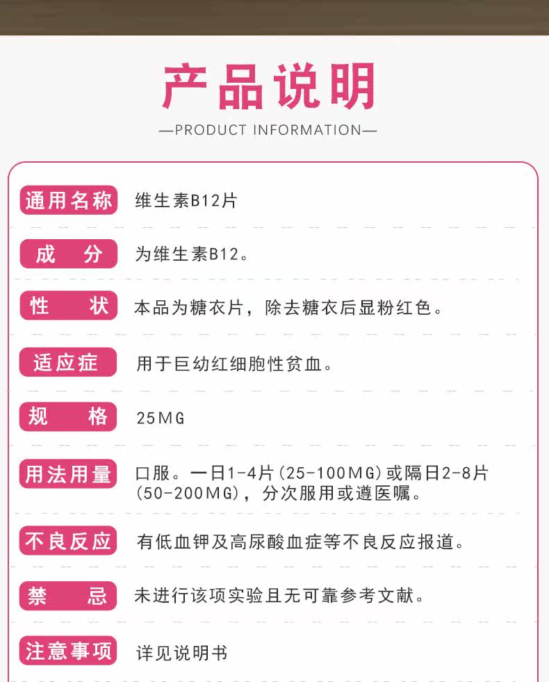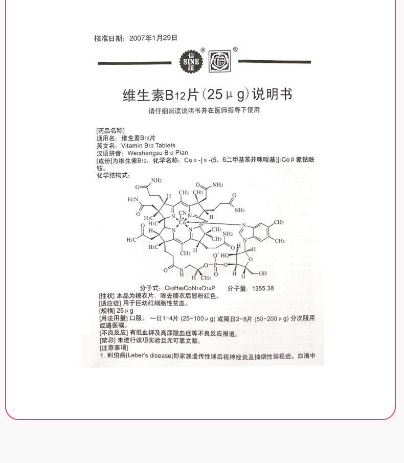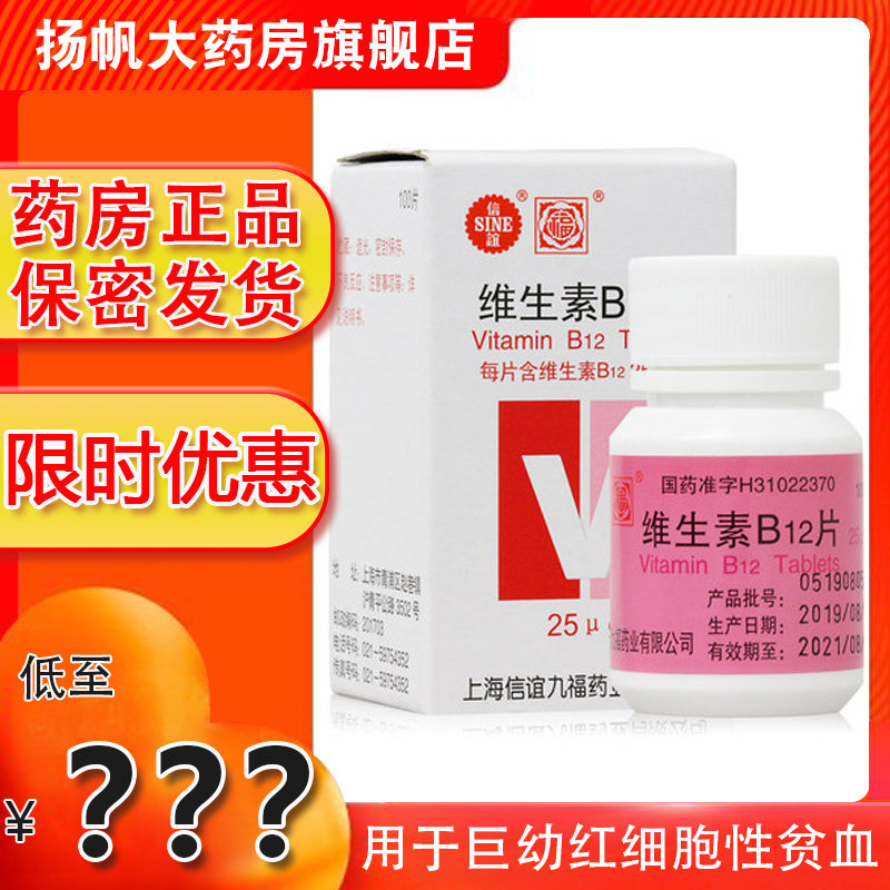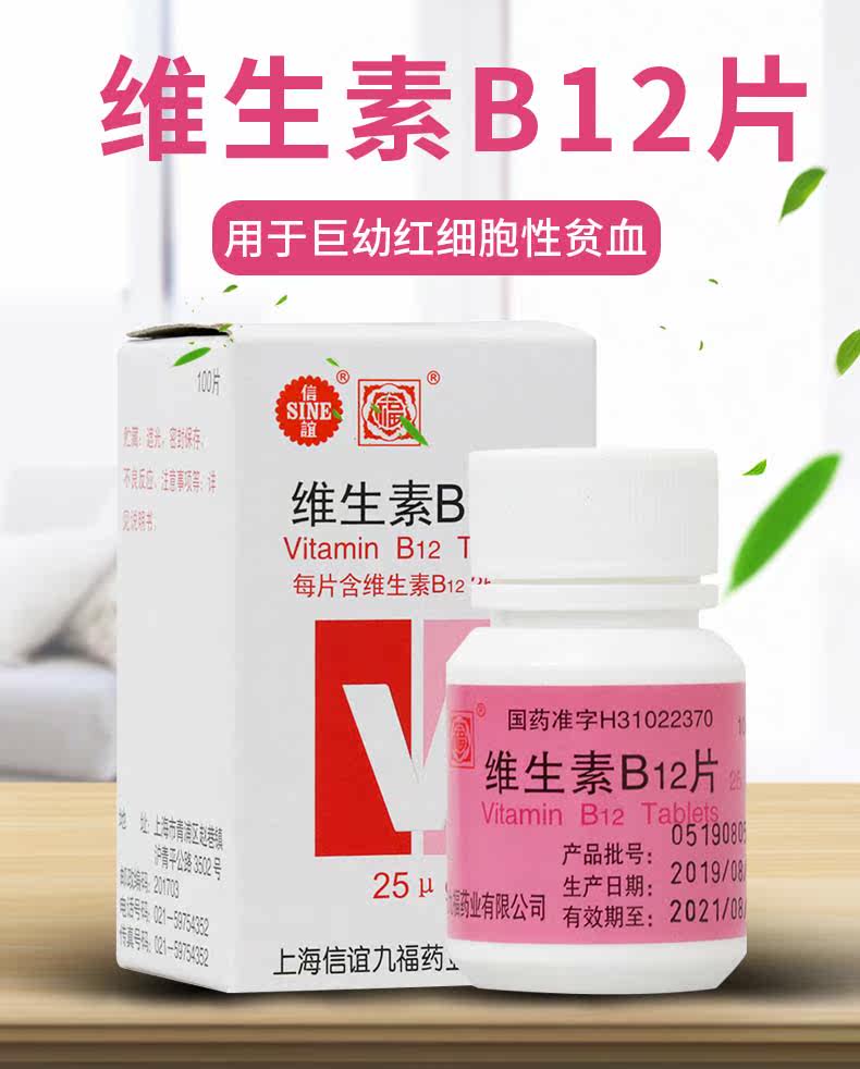 Две ящики снижения] Синьи витамин B12 Таблетки 25г*100 Таблетки/Коробка Гигантские эритроциты Анемия Таблетки Детские лекарства для взрослых Витамин В12