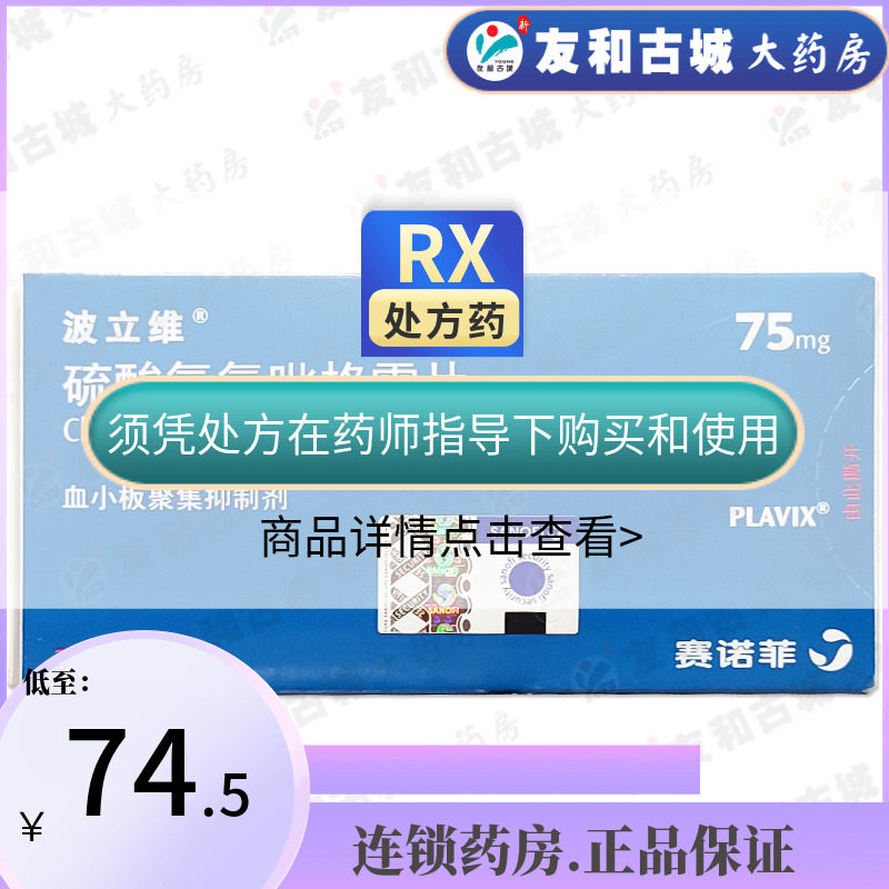 Всего 74,5] Поливорсульфат -кабидоглитические таблетки 75 мг*28 таблетки/ящик для анальгетического склероза Образование тромба