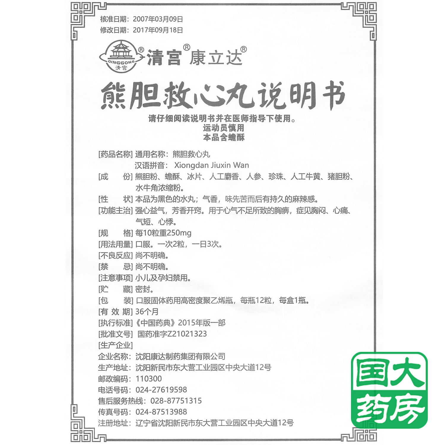 清宫 Xiong Dabbin Jianxin таблетки 12 зерна*1 бутылка/коробка