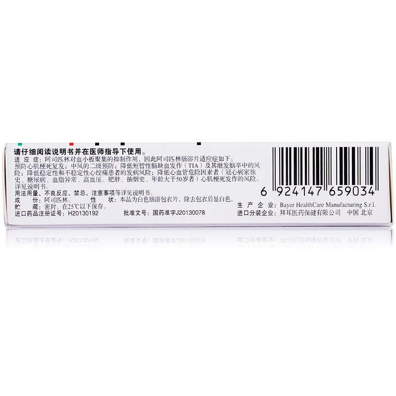 拜阿司匹灵 Аспирин Энтерикохилические Таблетки 100 мг*30 Таблетки для предотвращения инфаркта миокарда Диабет и аномалии липидов в крови