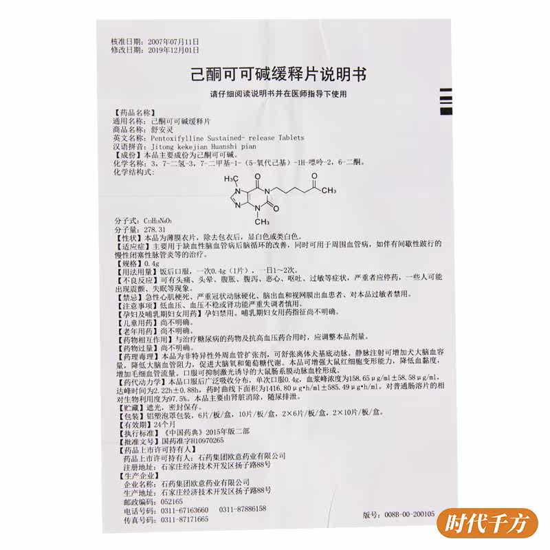 CSPC/Stone Medicine Group Shu Ansling Headone Cocoa Cocoa Cocoa Cocoa 0,4G*10 Таблетки/коробка используются для улучшения циркуляции головного мозга после ишемического цереброваскулярного заболевания