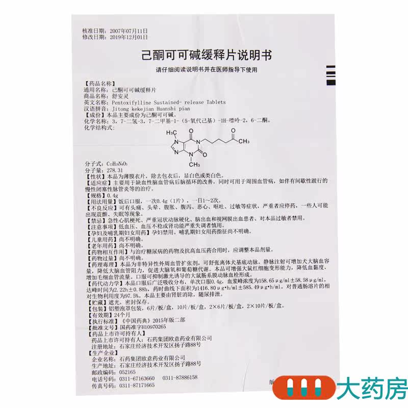 БЕСПЛАТНАЯ ДОСТАВКА+Цена прибытия 112] Группа CSPC/Stone Medicine Group Shu'an Ling Heylone Cocoa Cocoa Cocoa Cocoa 0,4G*10 Таблетка/Коробка в основном используется для ишемического геморроя головного мозга и улучшает хроническую окклюзию васкулит после мозгового цикла.