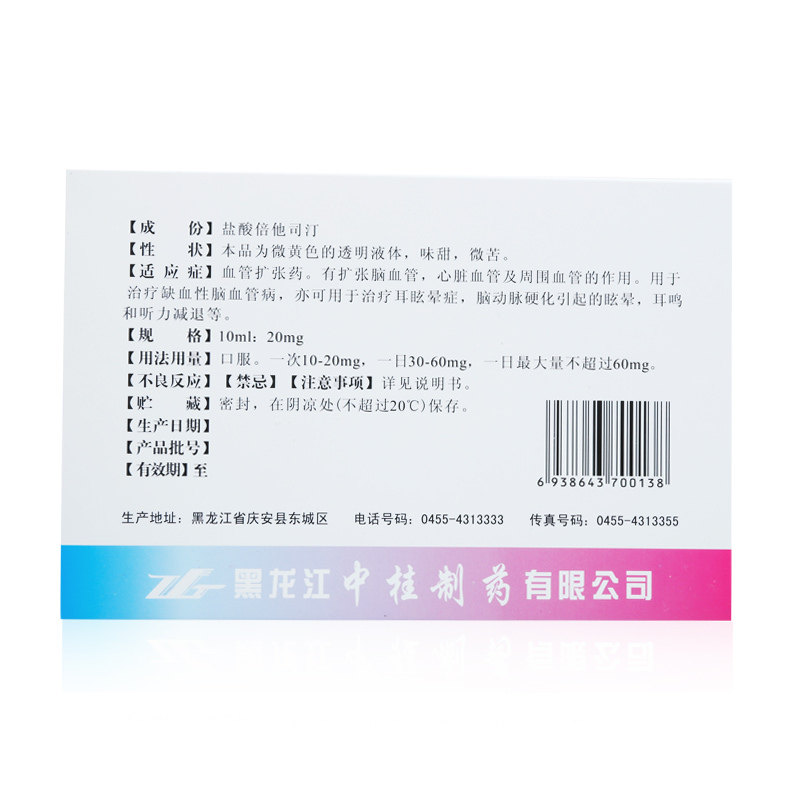 中桂 Синин -гидрохлорид гидрохлорная пероральная жидкость 10 мл: 20 мг*9 Поддержка/коробка головокружения, головокружение, ишемия, расширение сосудистого мозгового артериосклероза