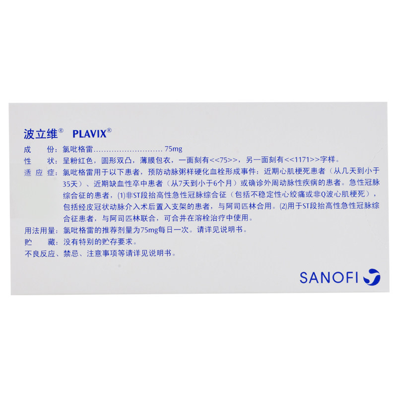 波立维 Клопидогрел гидросульфат таблетки 75 мг*7 таблеток/коробка