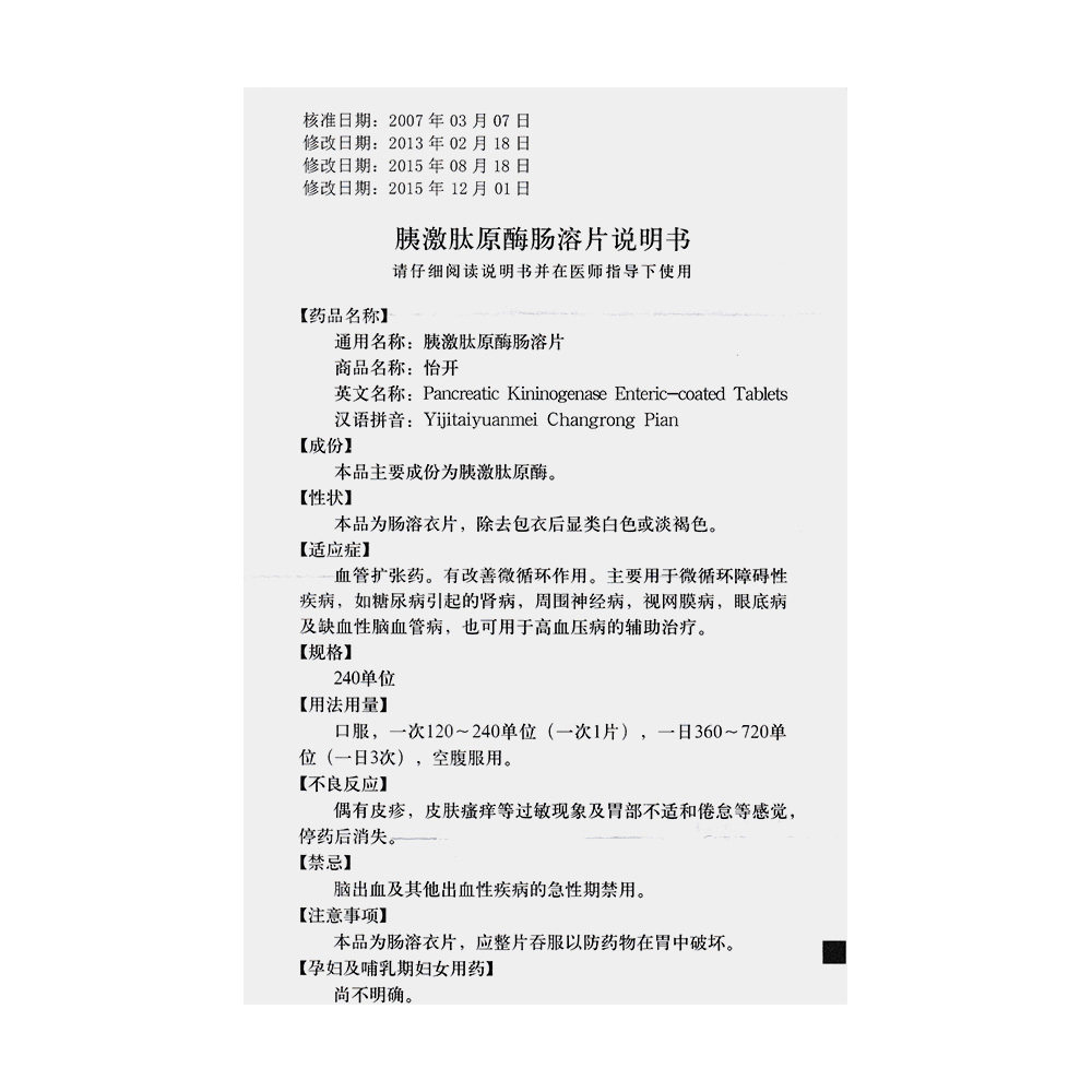 怡开 Панкреатическая олиграпенаназа гонорронин 240 единица*12 таблеток*2 пластины/коробку -сосудистые препараты для улучшения микроциркуляции нефротического зрения сетчатка.