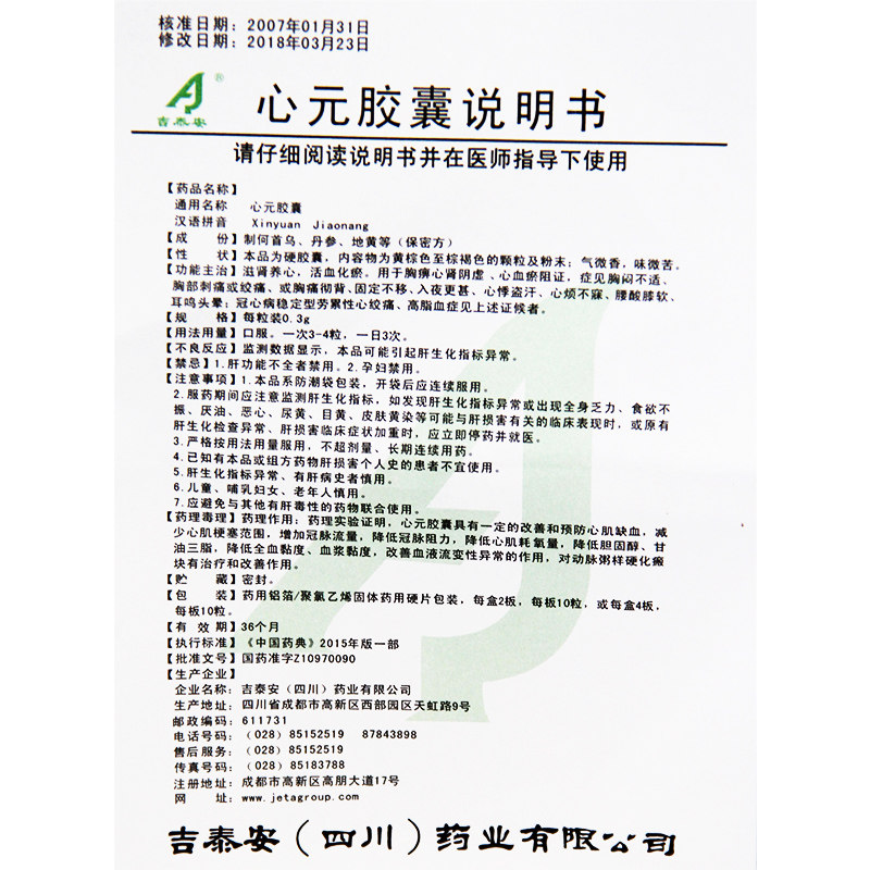 JETA/吉泰安 Капсула Xinyuan 0,3 г*20 капсулы/коробка