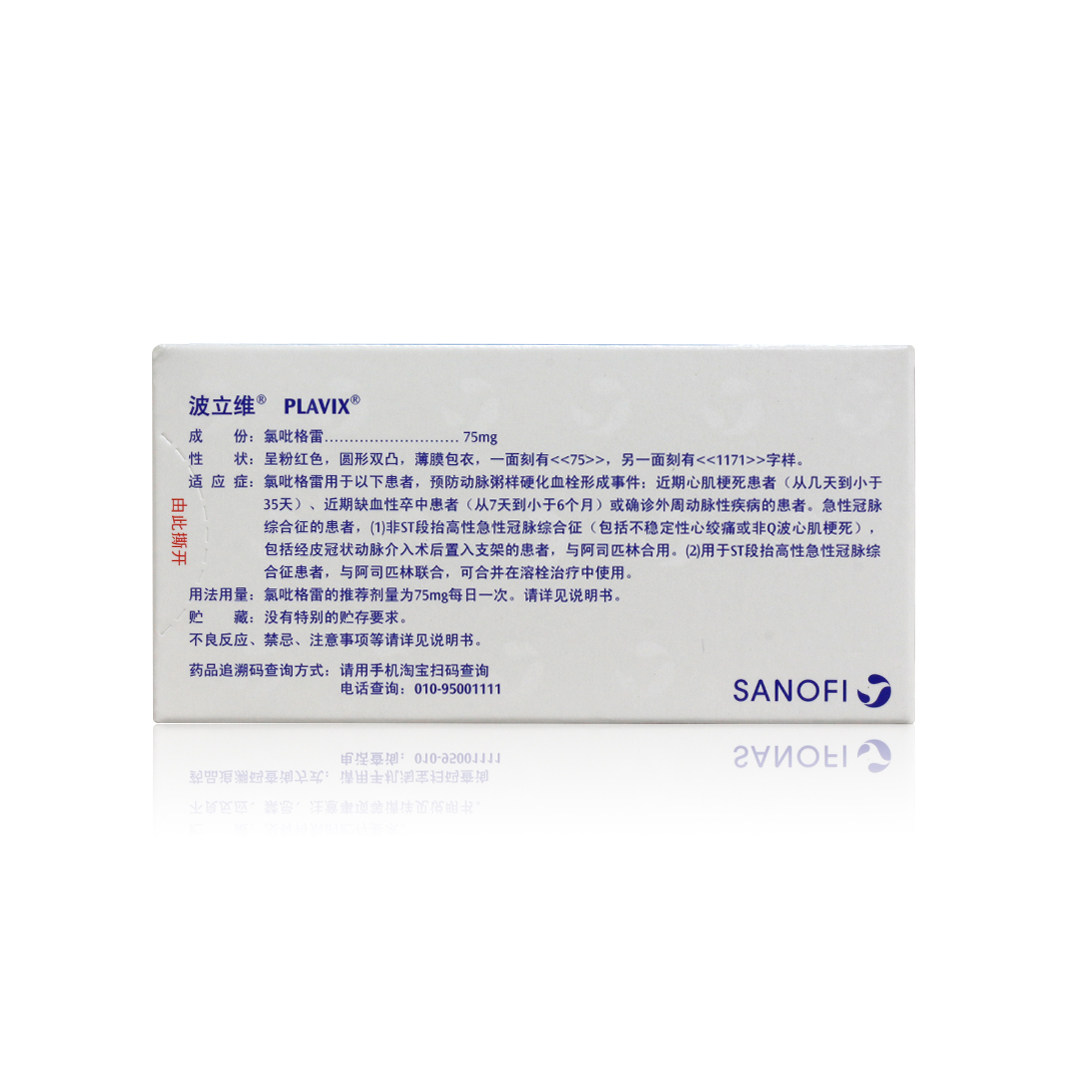 波立维 Сульфатные кабидоглитические таблетки 75 мг*28 таблетки/коробка