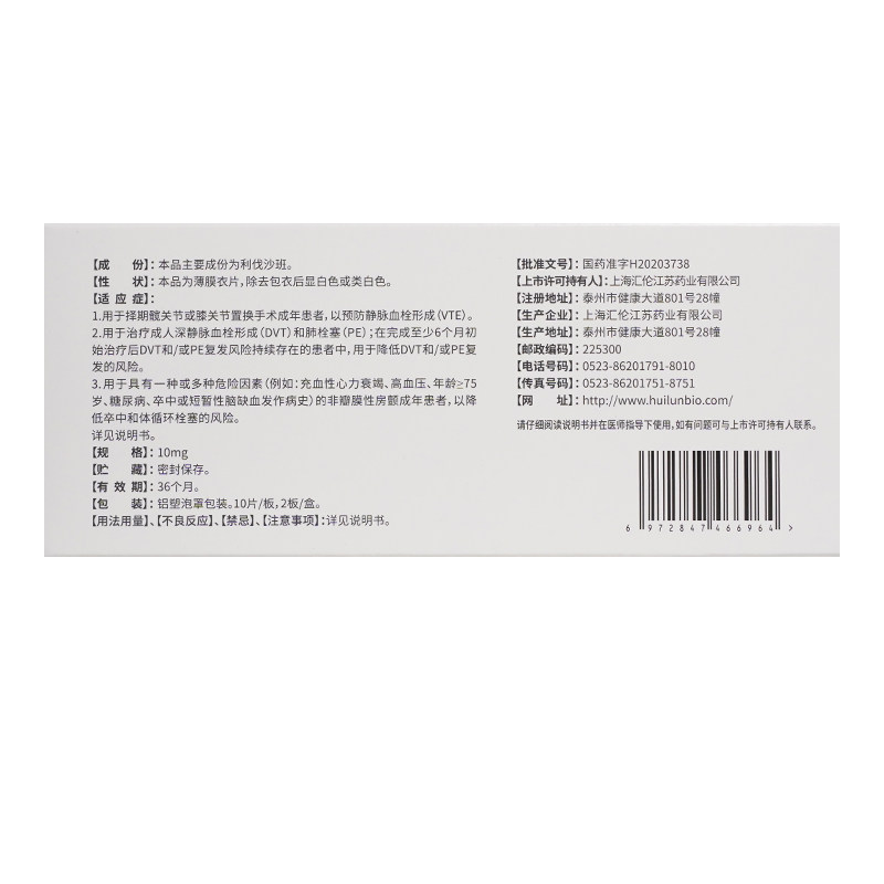 利尔班 Liva San 10 мг*20 таблетки/коробка предотвращают тромбоз и застойную сердечную недостаточность, подлинную подлинность для обеспечения хирургии диабета диабета головного мозга.