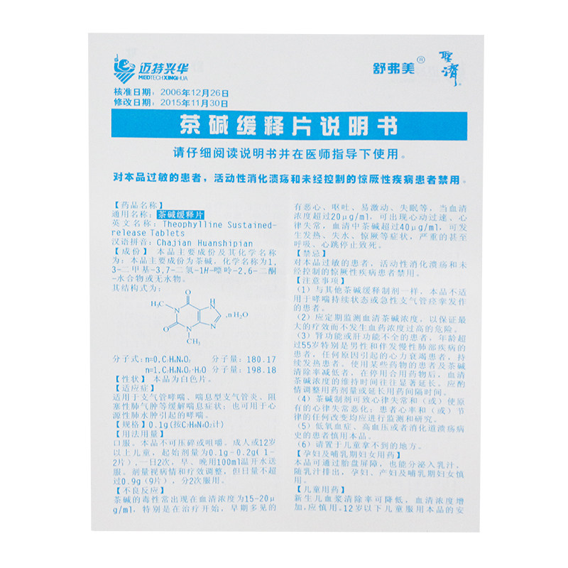 舒弗美 Камеллия -калиновая медленная таблетки 0,1 г*24 таблетки/ящик -бронхиальная астма для обеспечения бронхита сердечной недостаточности, кашля, астмы, легочной пневмонии, обструктивного легочного пневмотита, бронхита