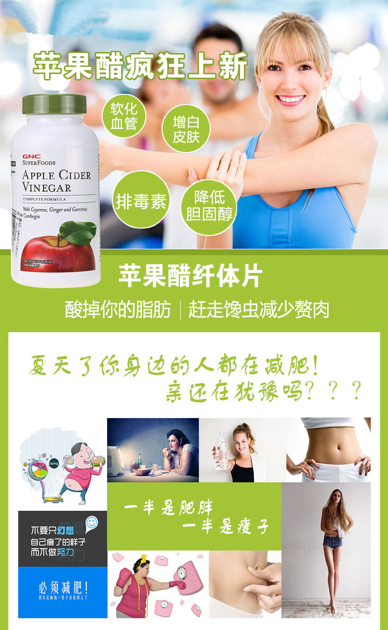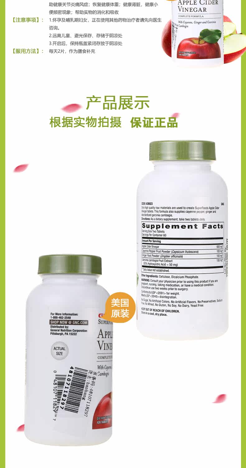 Американский импортный GNC/Jiananxi Apple Cider -уксус очаг Управление весами 120 зерна*2 бутылки