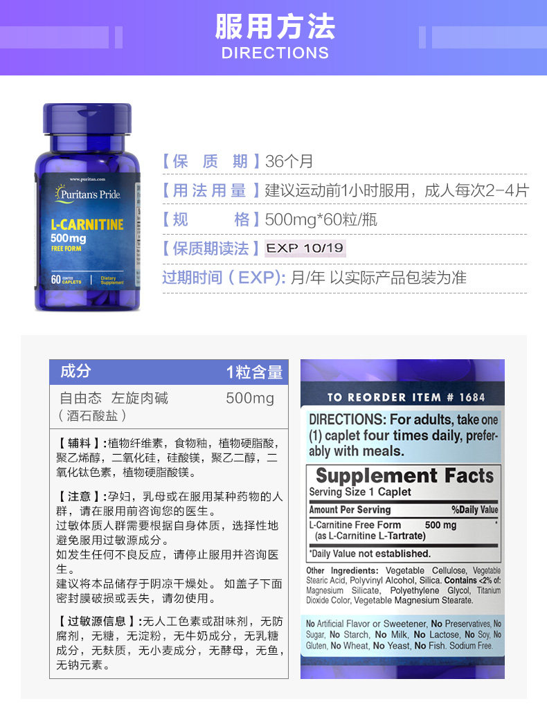 [В период Spike] Prinhe Imported L -Карнитин 500 мг*60 капсул в Соединенных Штатах