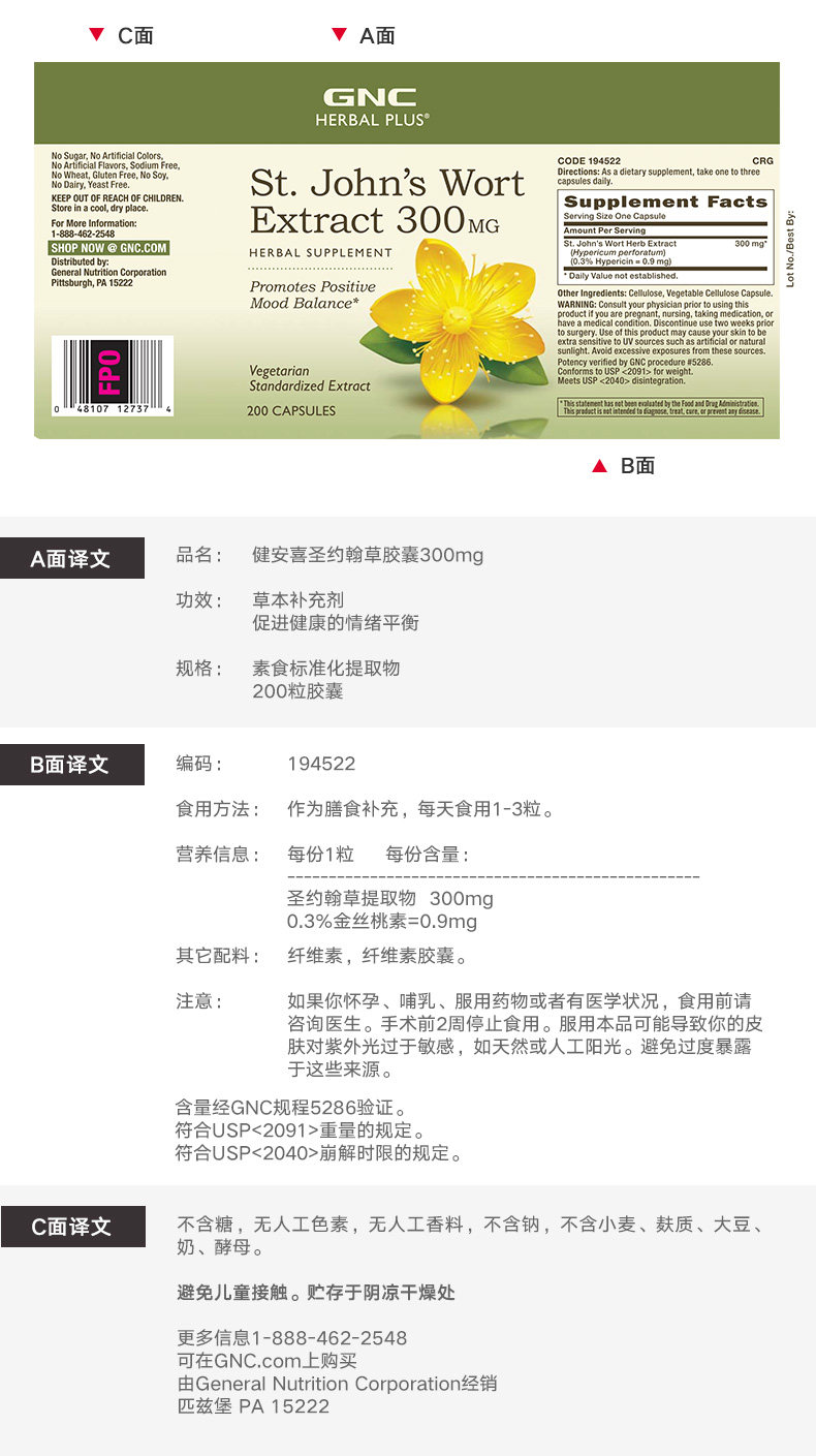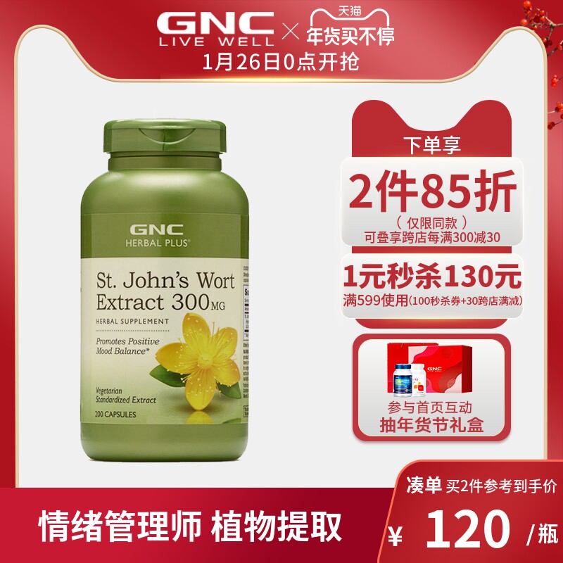 GNC Jian'an Xisheng John Grass Capsule Capsule Sweight естественное облегчение против тревоги против депрессии 300 мг*200 капсул