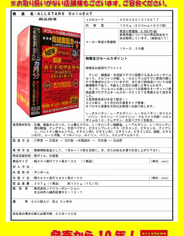 Япония бесплатная доставка всех звезд диета, аминокислотное масло сжигания липидов, 600 зерновая каррина