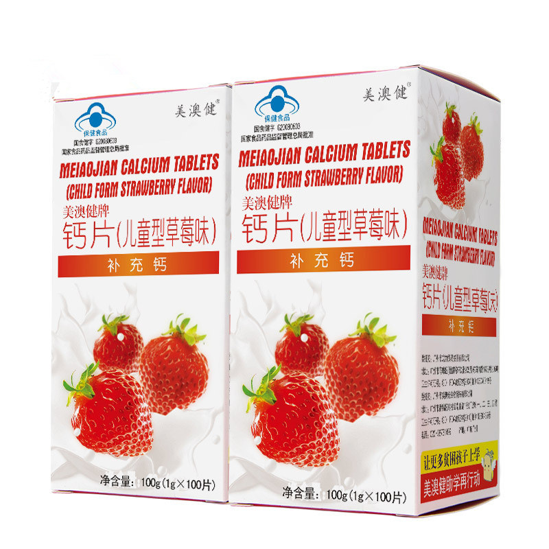 Mei aojian кальций таблетка (детская клубничная аромат) 1G/Piece*100 Таблетки*2 бутылки с подлинным флагманским магазином кальция