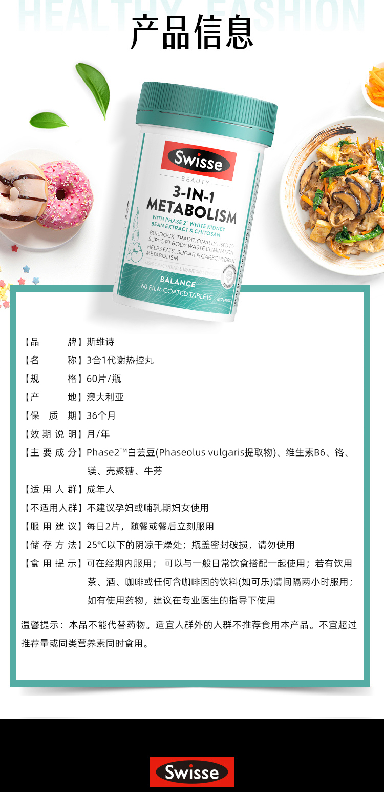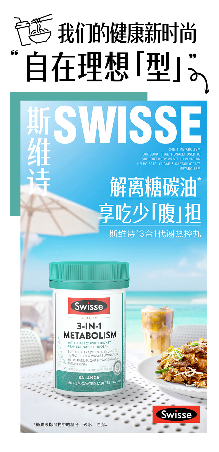 Австралия прямая почтовая почта Swisse Swelle 3 -in -1 Метаболический термический контроль контроль таблеток -таблетки. Контролируемый маслом -контроль