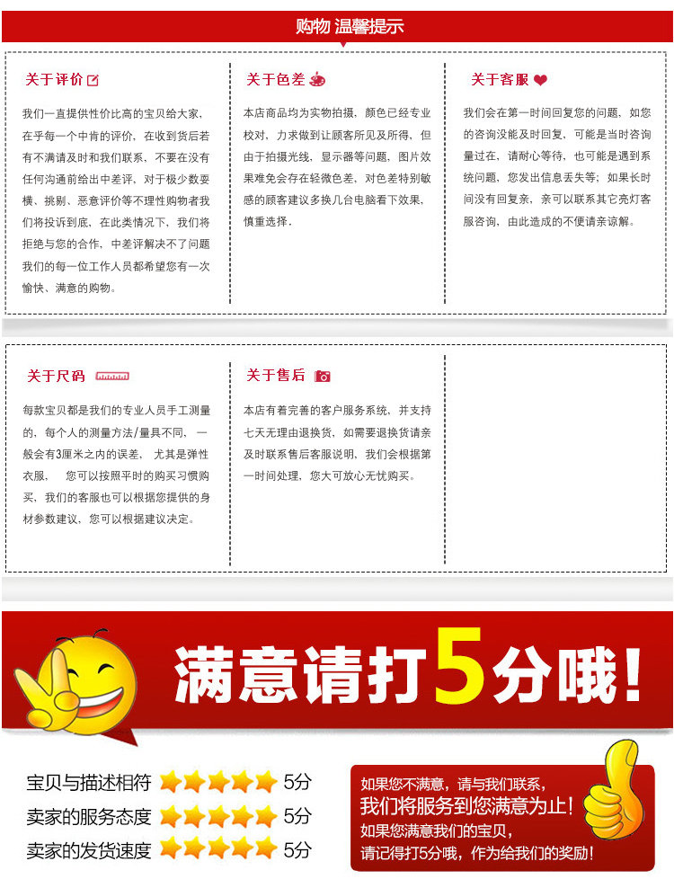 1. Наш магазин поддерживает семидневное возвращение и обмен без сезона. (Только три набора или менее трех штук, групповых покупок и три набора (предметы) или более не поддерживают семидневные необоснованные доходности)