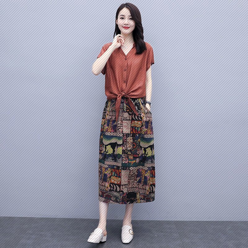 Платье, юбка, летняя одежда, модный комплект для отдыха, из хлопка и льна, 2020 года, городской стиль, оверсайз