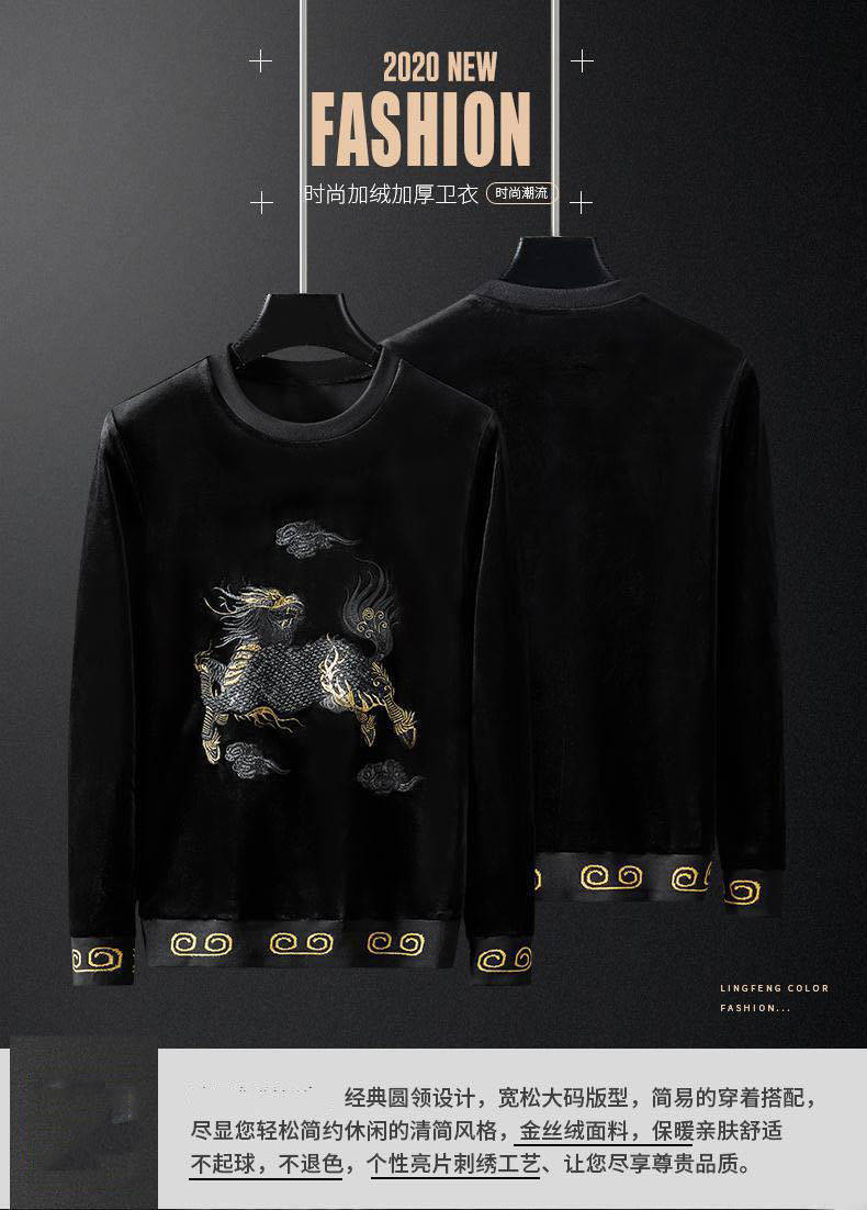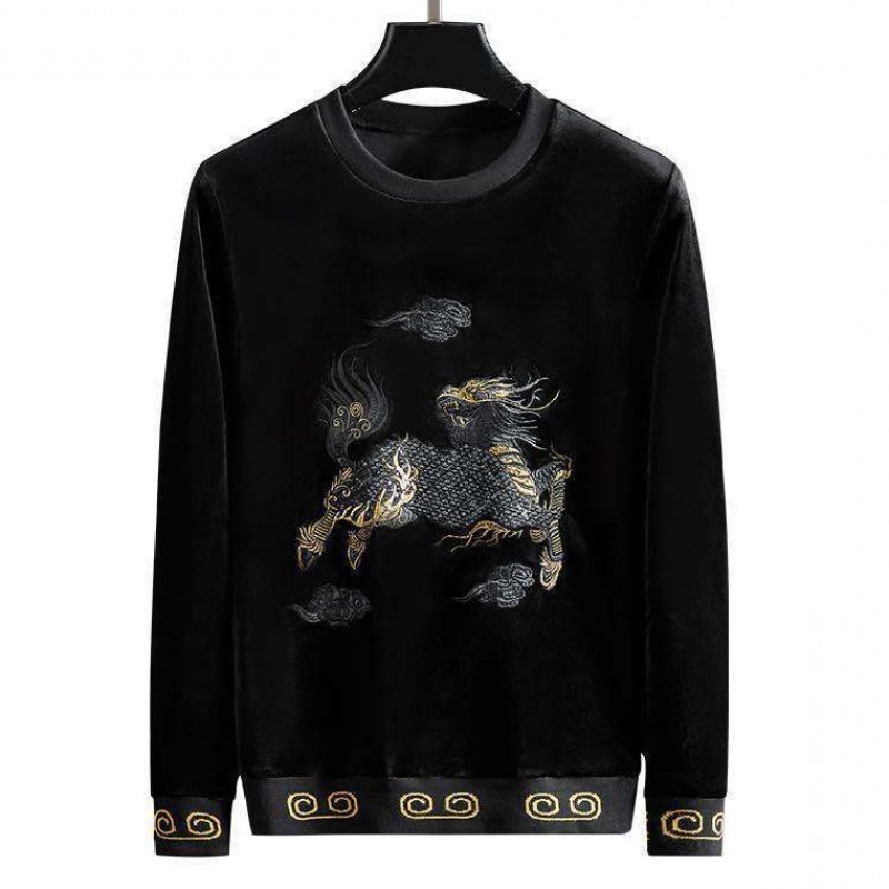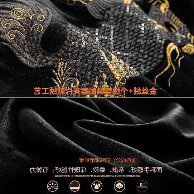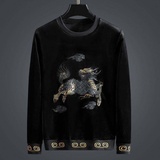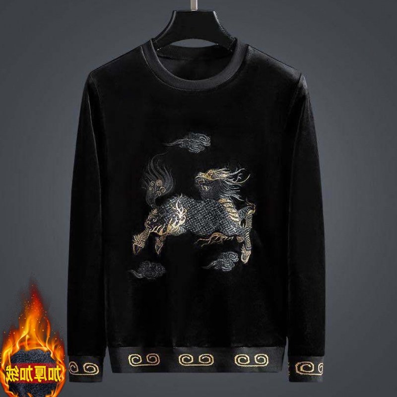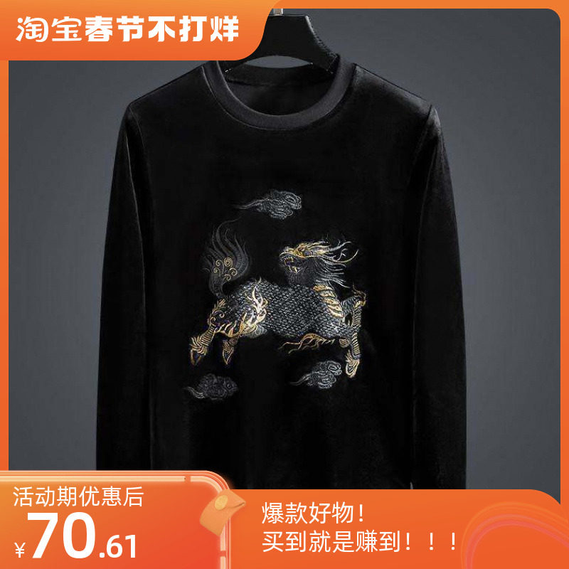 Бархатная модная толстовка, демисезонный лонгслив, китайский стиль, с вышивкой, в корейском стиле, оверсайз