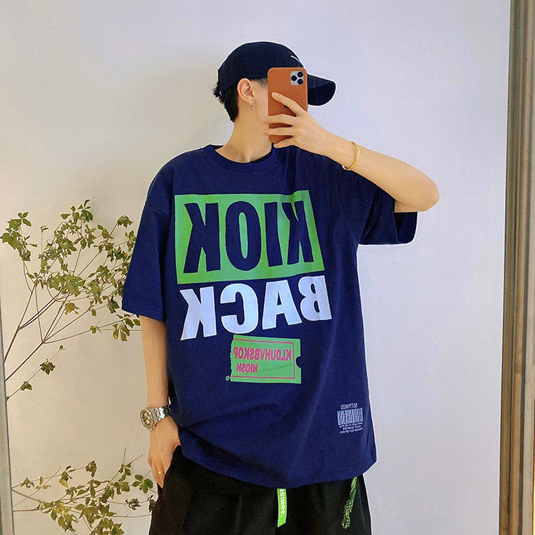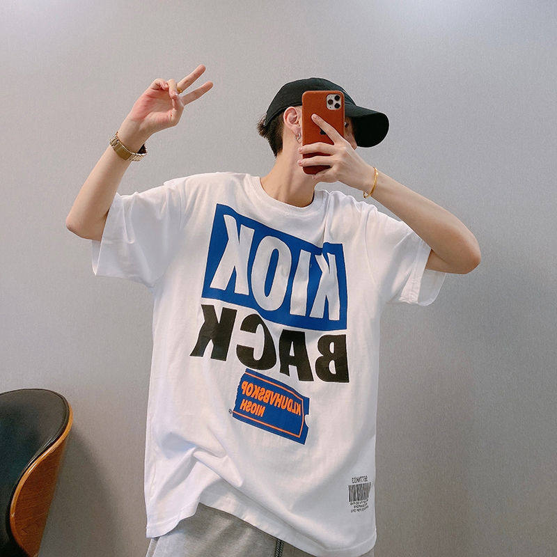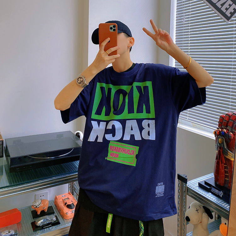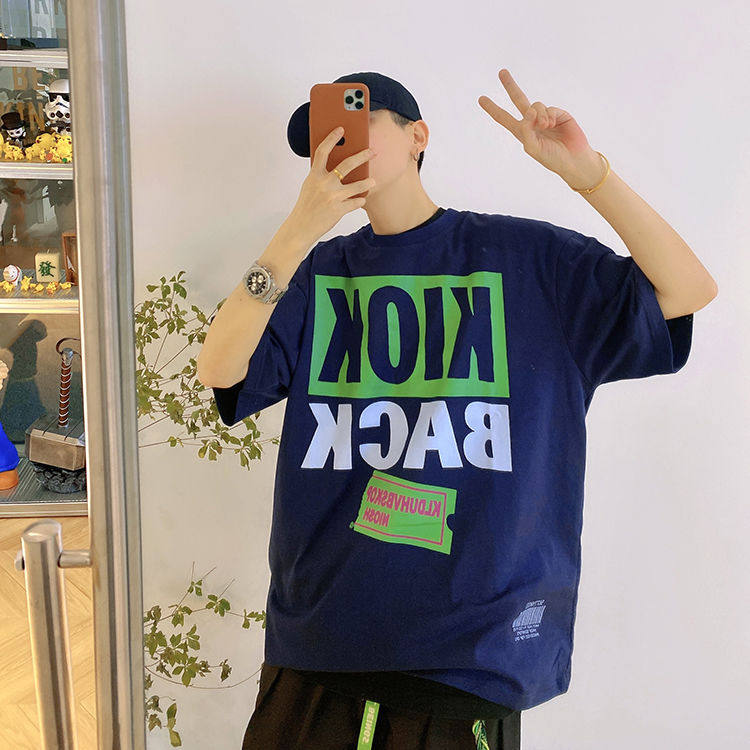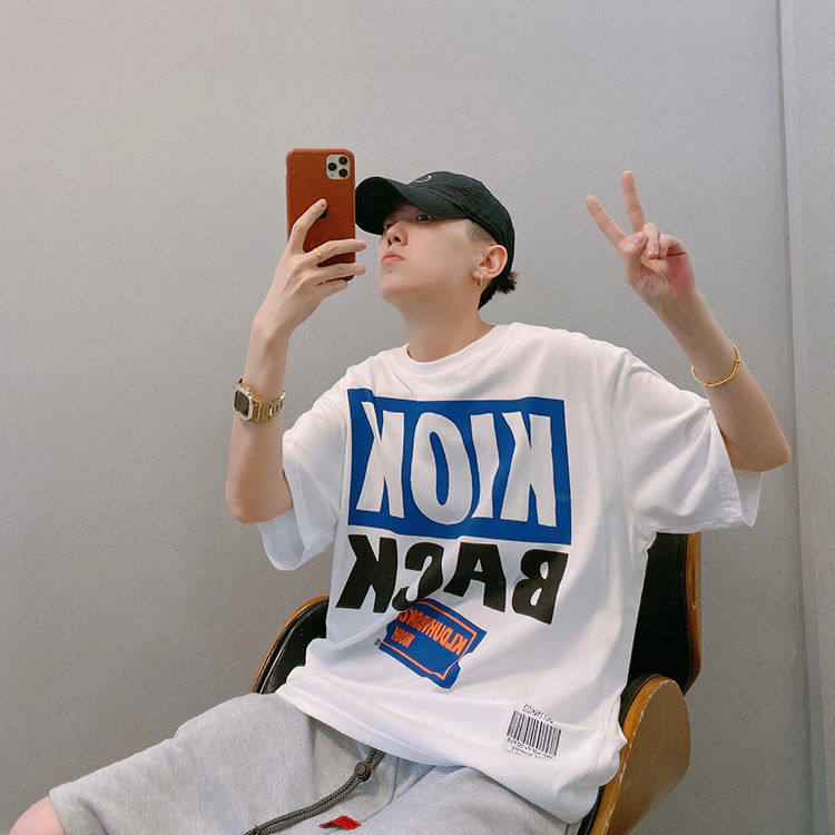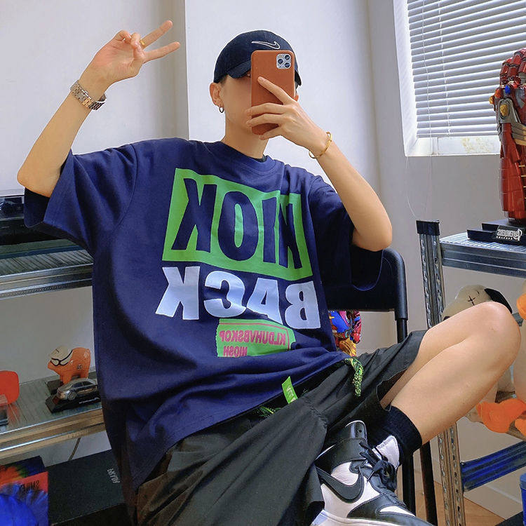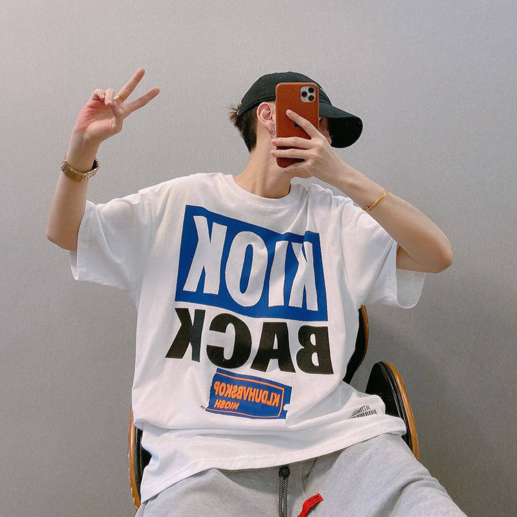 Мистер Оранж Мужской Гукао Гао -стрит Ретро Свободный Свободный 2022 Новая хлопковая американец пара с коротким рукавом с коротким рукавом