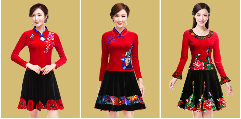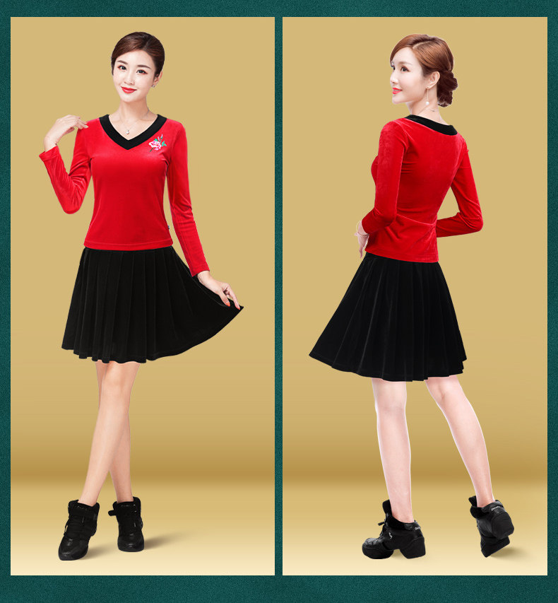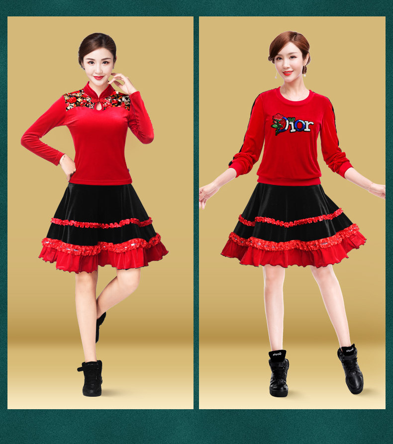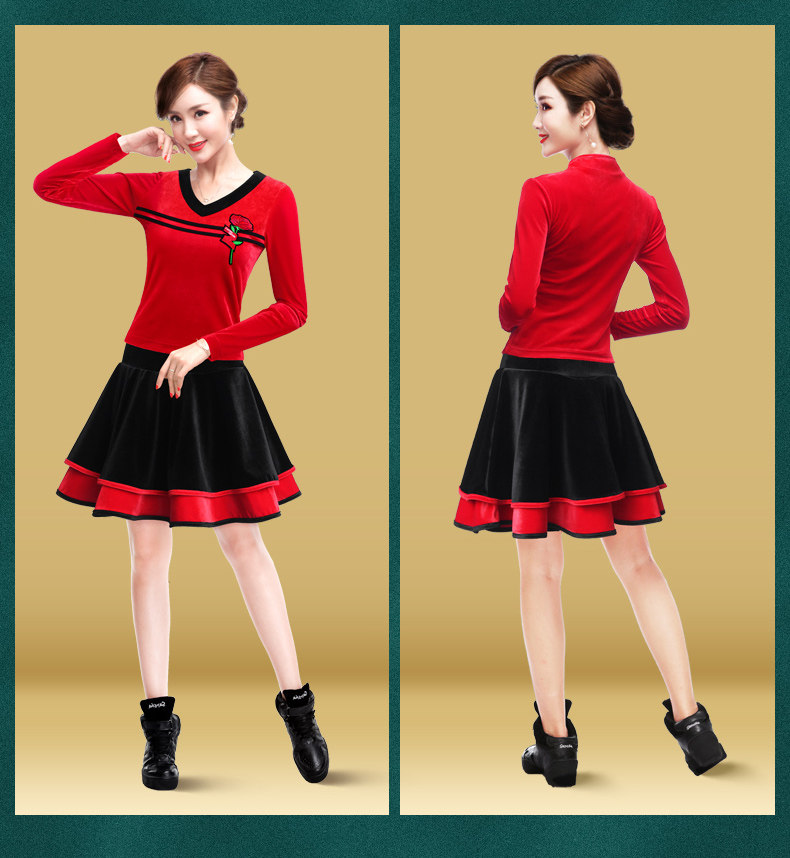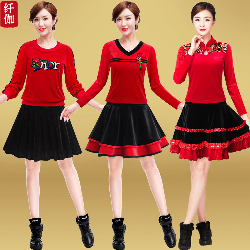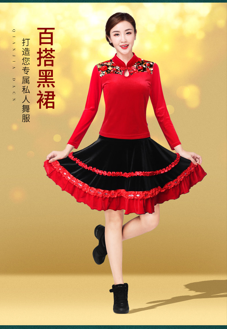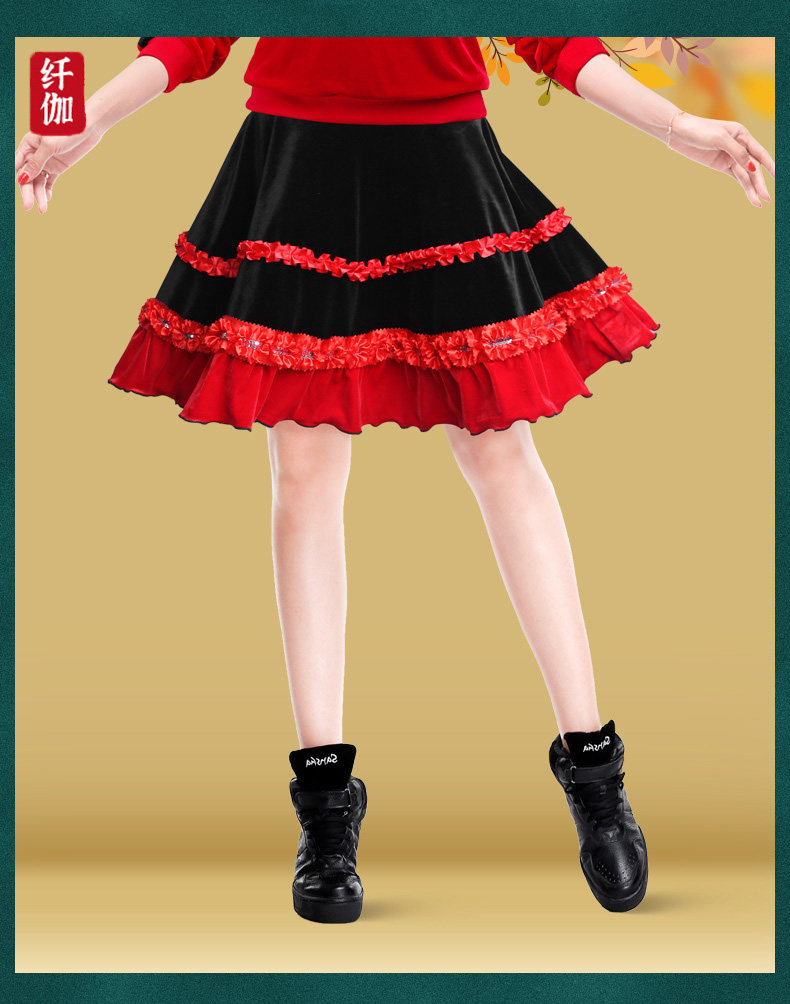 纤伽 Демисезонная бархатная танцующая юбка, для среднего возраста