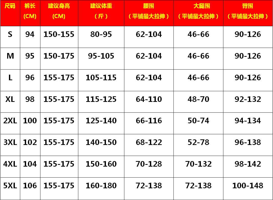 размер | Брюки (CM) | Рекомендуемая высота (CM) | Рекомендуемый вес (злобный) | талия (Tingpu Darai Stretch) | Бедро (Tingpu Darai Stretch) | Бедро (Tingpu Darai Stretch) |