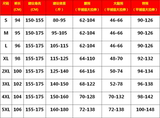 XL | 98 | 155-175 | 115-125 | 64-110 | 48-70 | 92-132 |