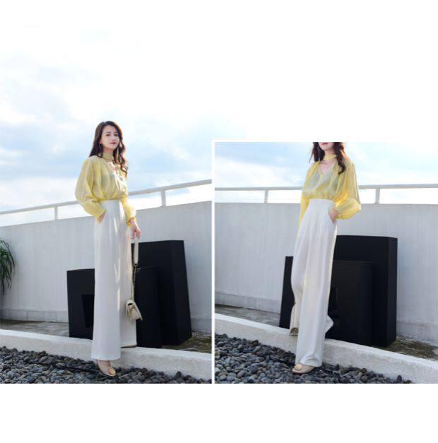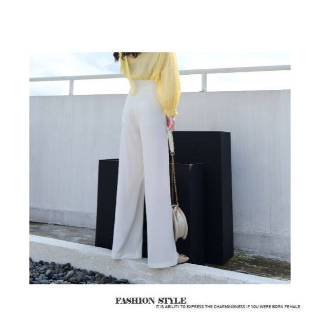 Черные белые штаны, штаны-клёш, в корейском стиле, высокая талия, по фигуре