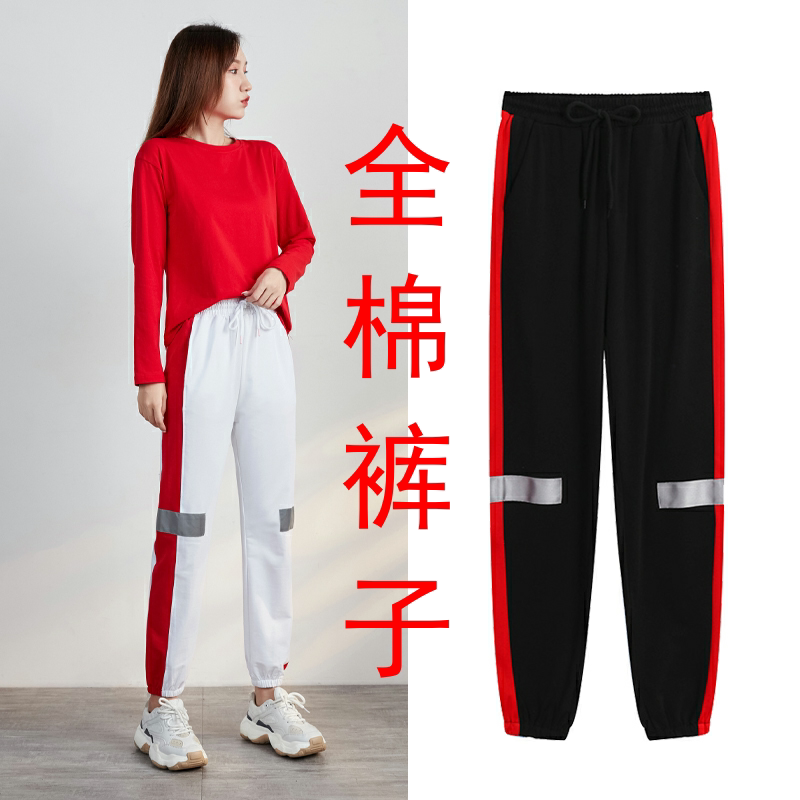 Светоотражающие осенние спортивные комфортные штаны для отдыха для спортзала, свободный крой