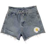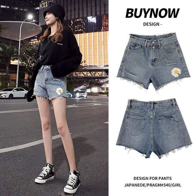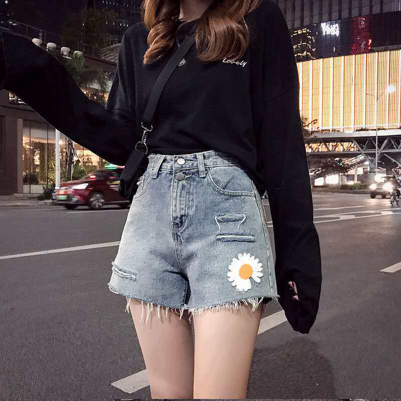 Джинсовая юбка, шорты, штаны для школьников, высокая талия, 2020, с вышивкой, в корейском стиле, по фигуре, свободный крой