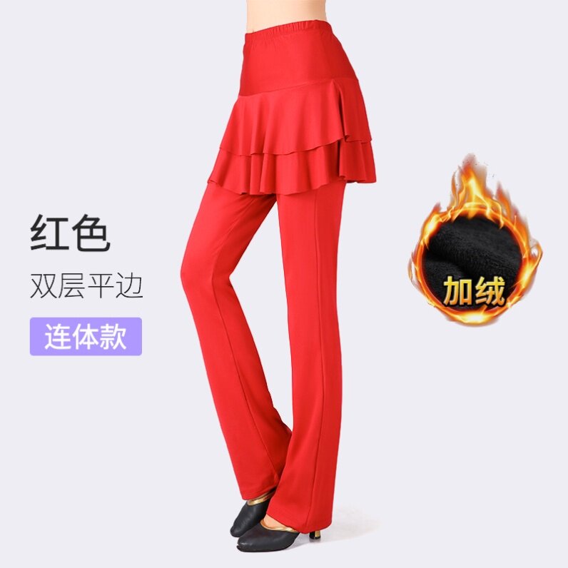 - Красные двойные брюки для юбки (плюс бархат) -u14