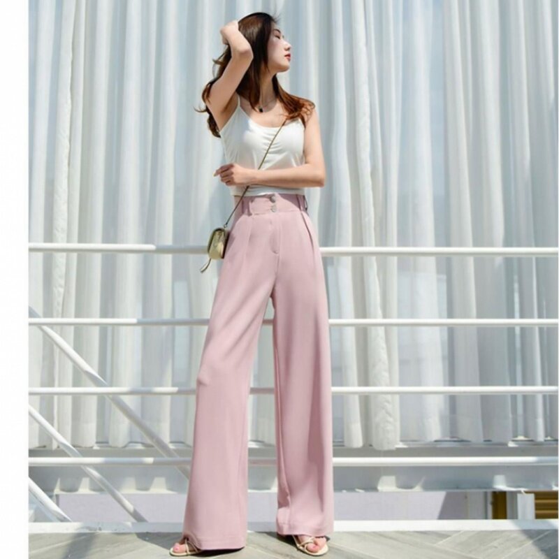 Длинные штаны, высокая талия, в корейском стиле, по фигуре, свободный прямой крой